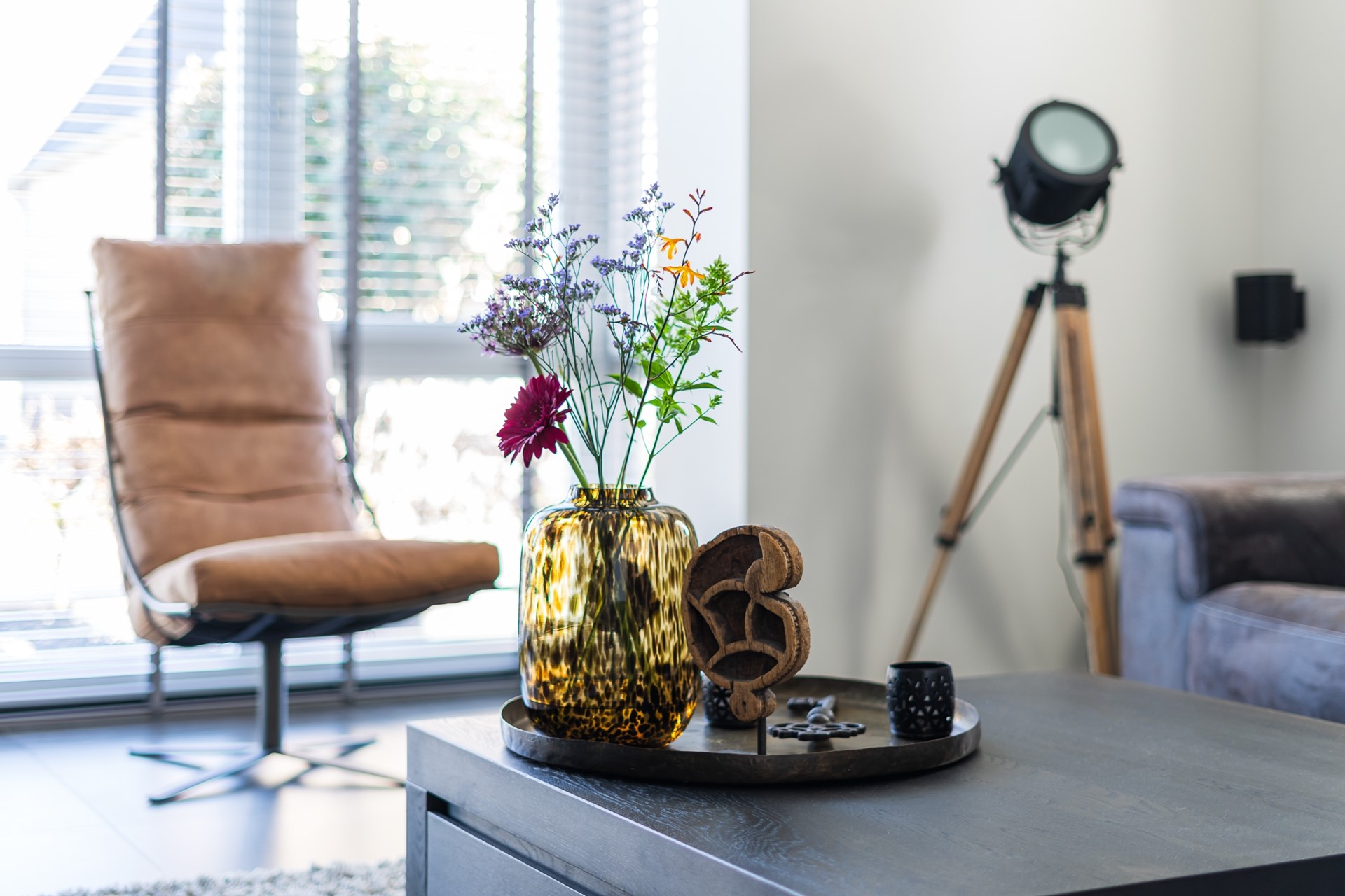 Via een elegante paneeldeur met facetgeslepen glas betreed je de royale living aan de voorzijde van het huis. Dit is zo’n ruimte waar je direct het gevoel hebt: hier wil je zijn. De zorgvuldige styling van de hal vloeit hier naadloos door en zorgt voor een stijlvol en harmonieus geheel. De stucplint langs het plafond voegt daarbij een subtiel en chic detail toe. De erker en het extra zijraam zorgen voor een prettige lichtinval en geven de ruimte karakter en diepte. De jaloezieën zijn inclusief. Je zult het met ons eens zijn: dit is een fijne plek om te ontspannen, met een mooi uitzicht op de straat. Ook op praktisch vlak is aan alles gedacht: de aansluitingen voor televisie en soundbar zijn blind in de wand verwerkt, wat zorgt voor een rustig en opgeruimd beeld.