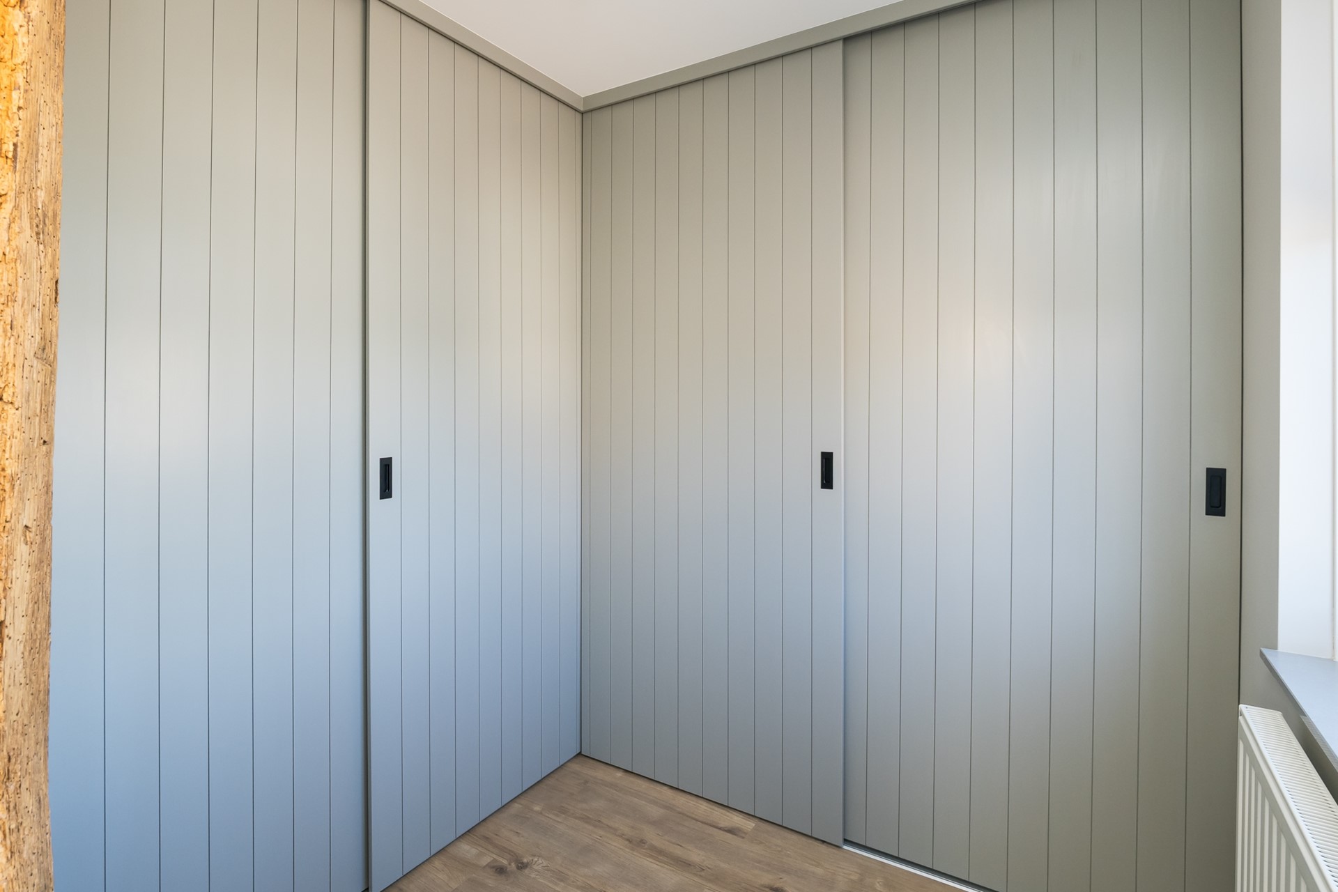 Zowel de overloop als de slaapkamers beschikken over praktische bergruimte achter de knieschotten — ideaal om spullen uit het zicht op te bergen.