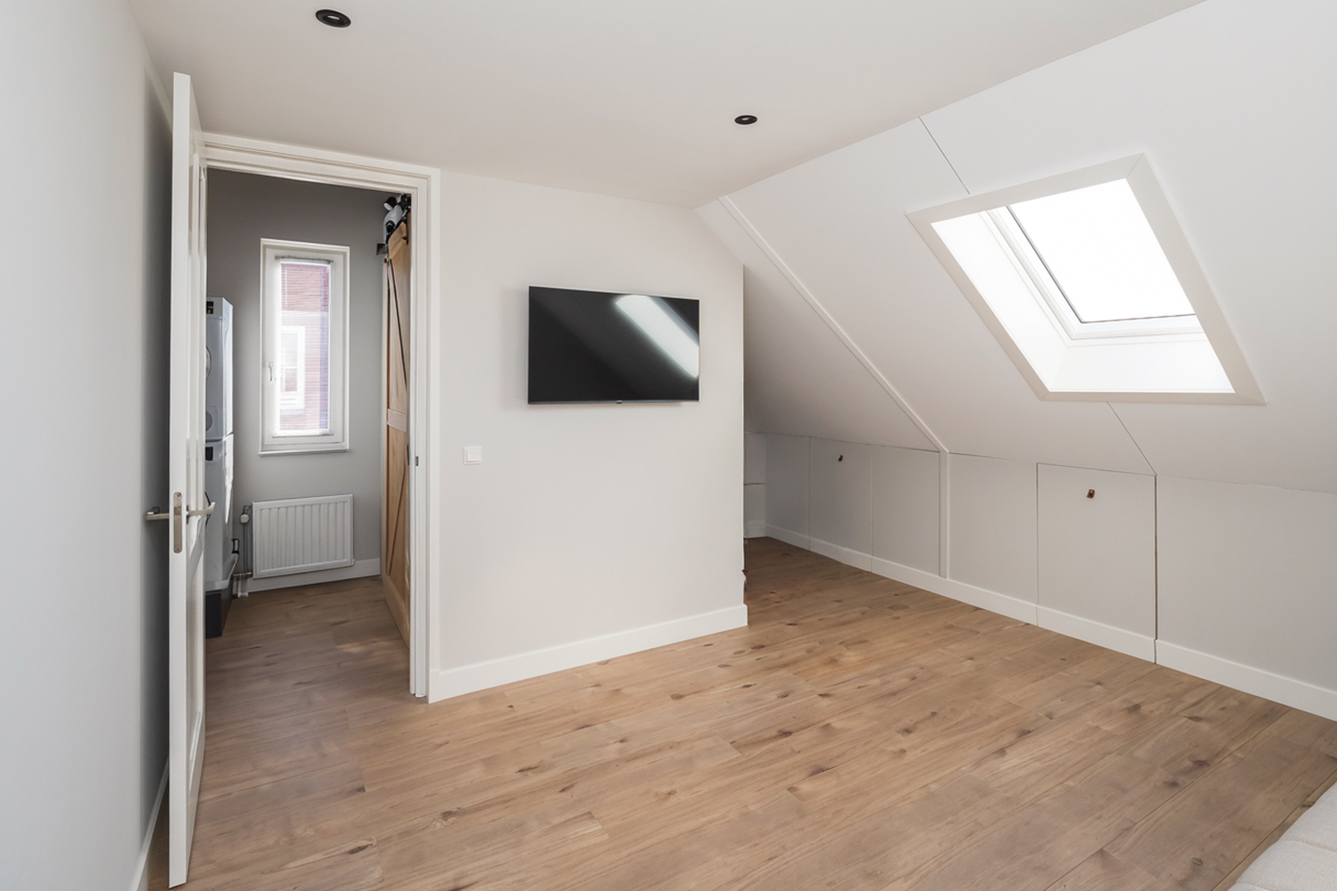 De vierde en vijfde slaapkamer bieden verrassend veel ruimte en flexibiliteit. Of je ze nu inricht als slaapkamers, thuiswerkplek of hobbyruimte. De vierde slaapkamer ligt aan de voorzijde en profiteert van de dakkapel, die zorgt voor een panoramisch uitzicht. De vijfde slaapkamer is uitgerust met een Velux-dakraam en een op afstand bedienbaar rolluik. In beide kamers zijn inbouwspots in het plafond verwerkt.