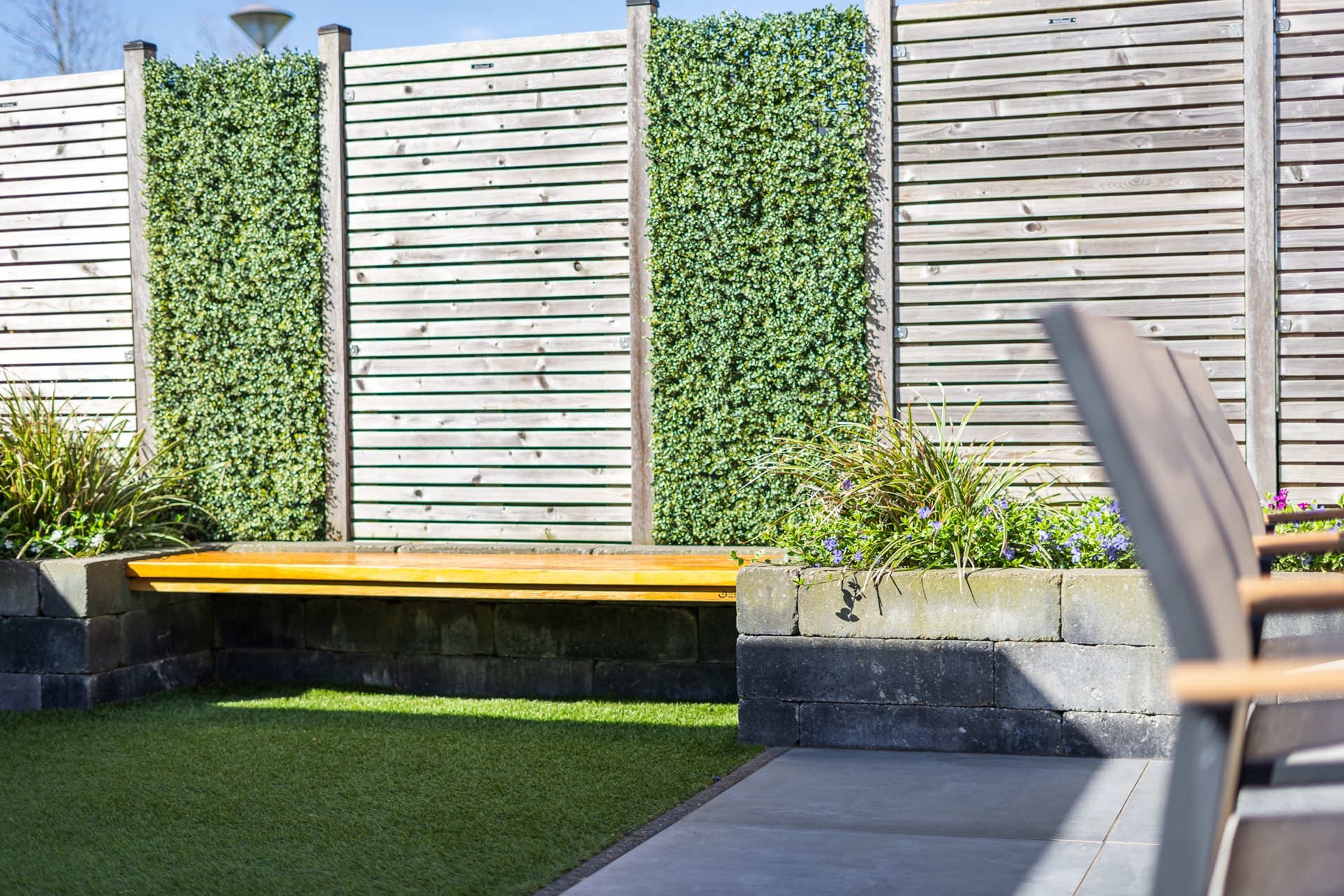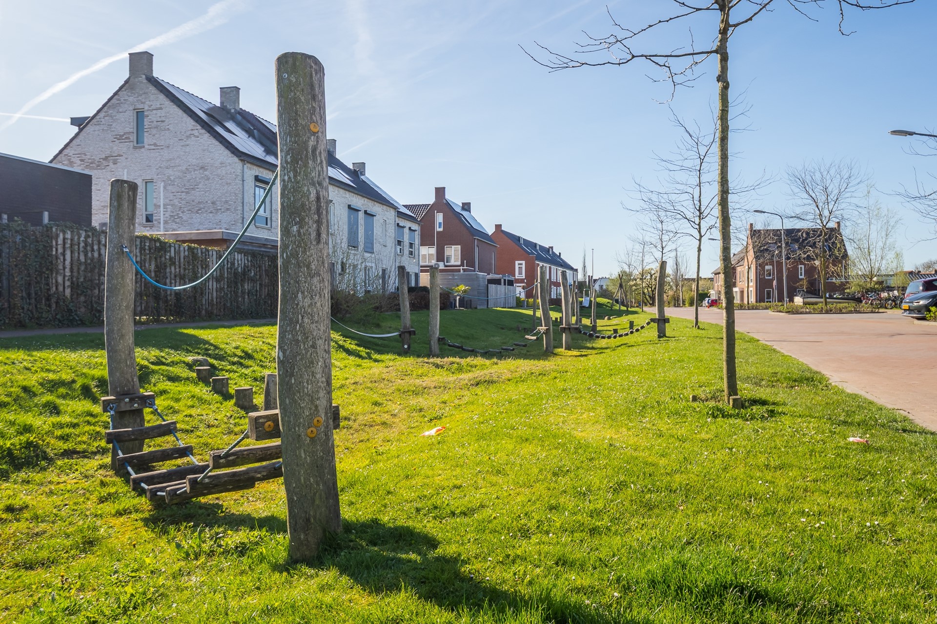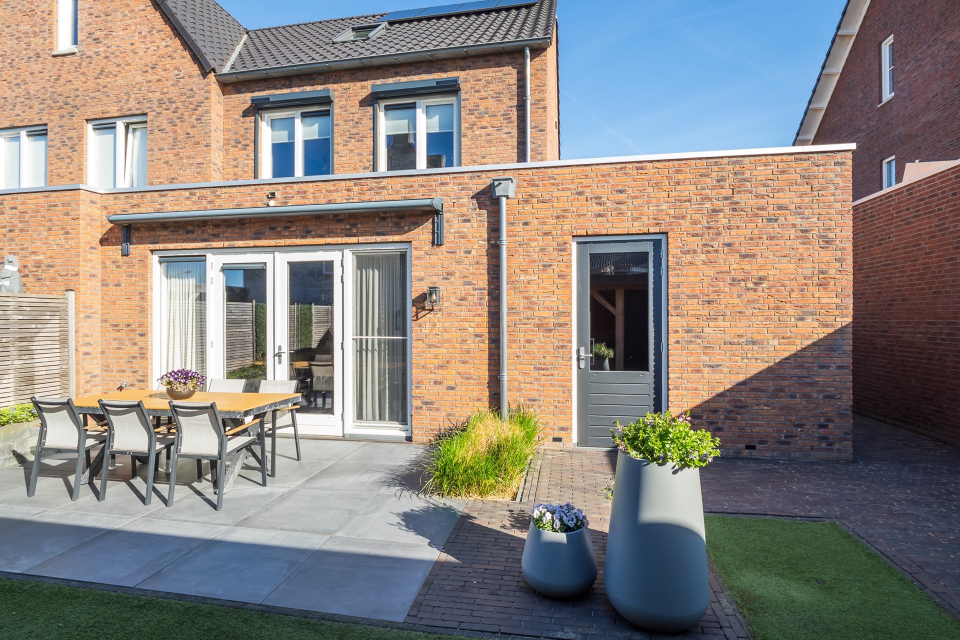 De achtertuin is een plek waar je het buitenleven echt beleeft. Dankzij de gunstige ligging op het zuiden geniet je hier volop van zon en licht. De tuin is met oog voor detail én onderhoudsvriendelijkheid aangelegd en straalt rust en balans uit. Groenborders, strakke lijnen en warme houtaccenten vormen samen een harmonieus geheel. De hoogwaardige bestrating bestaat uit hardgebakken klinkers (waaltjes), gecombineerd met grootformaat keramische tegels. Het royale terras vormt een prettig verlengstuk van de woonkeuken. Achterin de tuin staat een kwalitatief bijgebouw van Douglashout en zwart gebeitst potdekselwerk, ingericht met een berging en een veranda. Ook in de avond is het in deze tuin heerlijk vertoeven. Subtiele grondspots in de borders en verlichting aan de gevels en in de veranda zorgen voor een warme en sfeervolle ambiance.