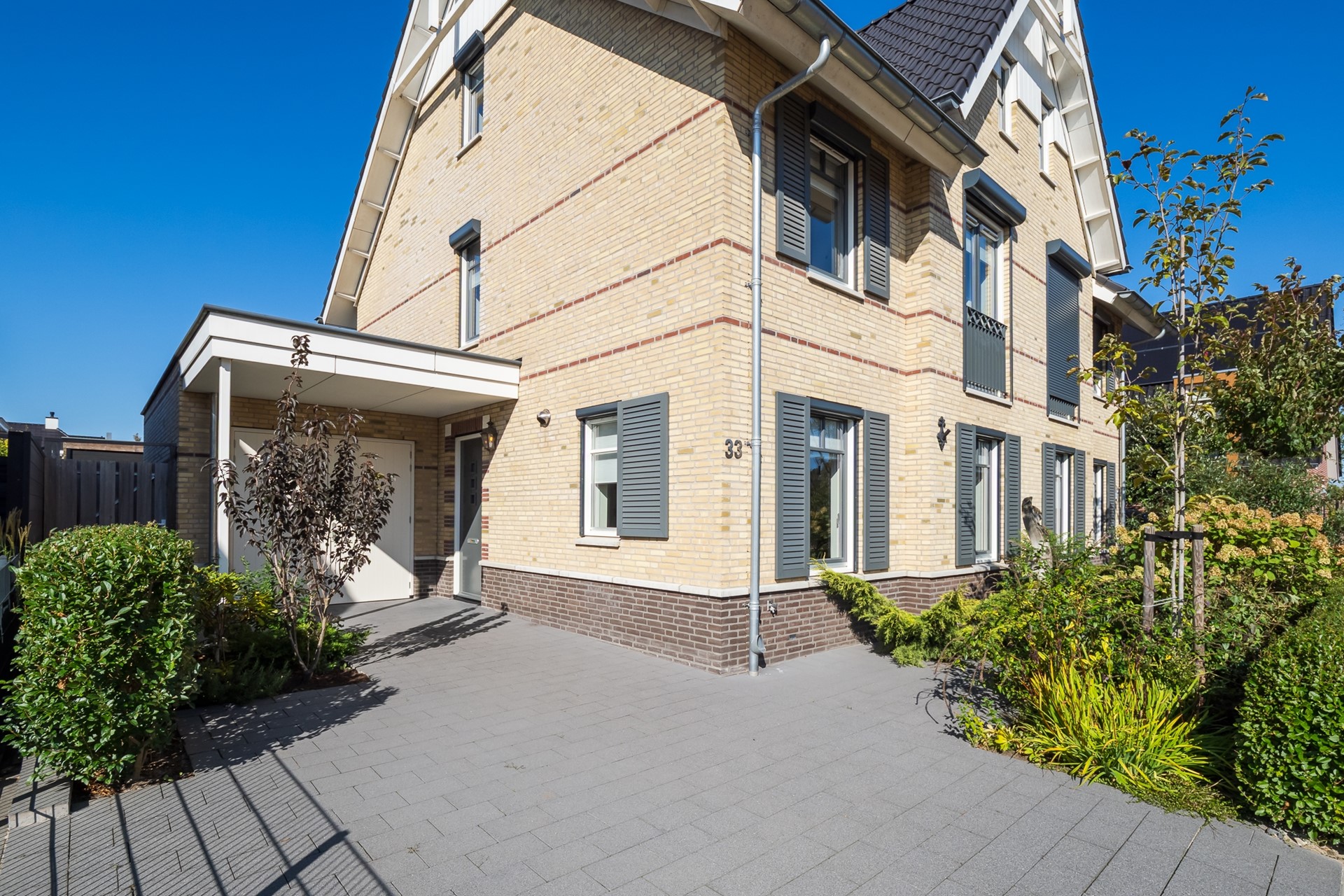 De goede eerste indruk begint al in de voortuin. De sierbestrating leidt je langs strak vormgegeven ligusterhagen en met zorg geselecteerde beplanting, die elk seizoen een ander gezicht toont. De oprit nodigt uit om thuis te komen. Ideaal hierbij is de overdekte luifel voor de garage, zodat je binnenkomst overdekt is.