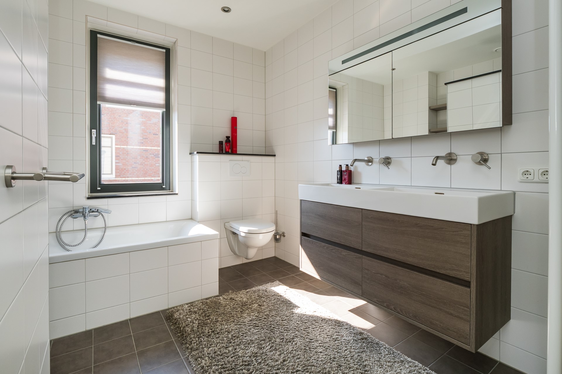 De badkamer is heerlijk ruim en van alle gemakken voorzien. Kom even helemaal tot rust in het royale ligbad. Verfris jezelf aan het duo-wastafel-meubel met spiegel inclusief led-verlichting. Laat de drukte van de dag van je afglijden in de ruime inloopdouche. Het wandcloset maakt het sanitair compleet. De designradiator, het ontluchtingsraam en de mechanische ventilatie zorgen voor een aangename temperatuur en een frisse atmosfeer. Het raam is uitgevoerd met een elektrisch bedienbaar rolluik.